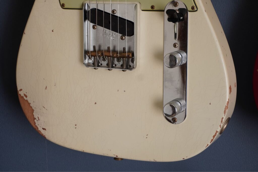 電装系はすべてオリジナル。ハンドワウンドでのTwisted Tele&Original Blackguardです。他のフェンダー・ビンテージ・ピックアップの中で最も粘りとミッドレンジが気持ちよく出てくれるピックアップです。それでいて歯切れが良く、ガッと鳴らしたら、強いアタックで出てくれるので、素晴らしい一本です。